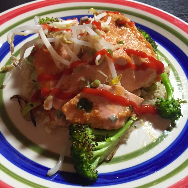 I served the sauce over pan seared salmon, sautéed broccoli, and brown rice. But I plan on cooking with it in many different ways! Best part is, that this sauce can be made and stored in your fridge as long as the expiration date on the main ingredient (psst, it’s greek yogurt) says!